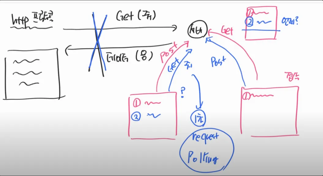 http로 채팅을 구현할 시, get요청을 계속 해줘서 채팅을 업데이트 해야 하는 방식이다.