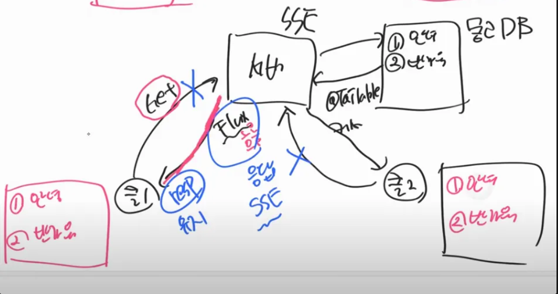 → sse는 요청 후에 응답을 해도 request만 끊기고, @TAILABLE로 인해 계속 데이터를 보낼 수 있다.